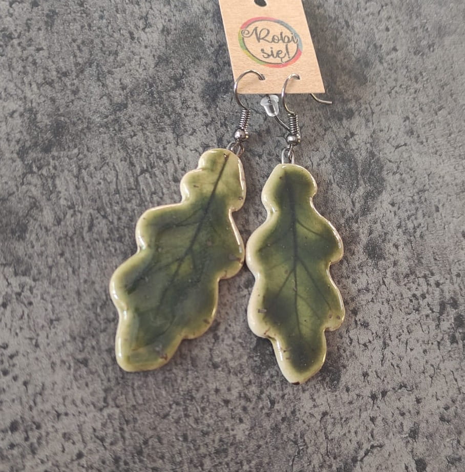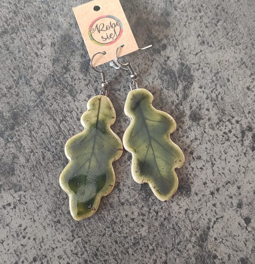Ręcznie wykonane kolczyki ceramiczne Listki dębu