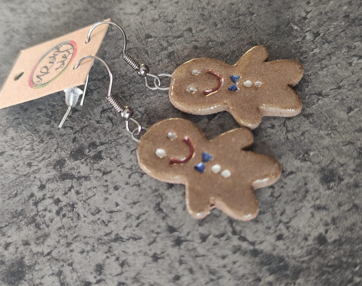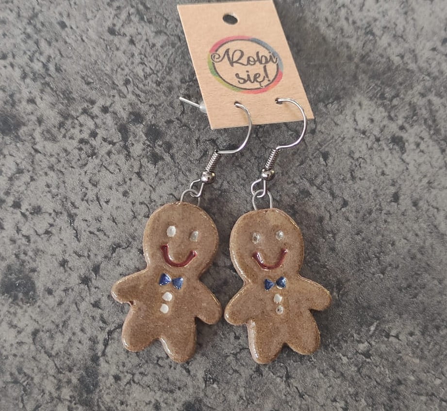 Kolczyki Pierniczki – Ręcznie Wykonane z Brązowej Gliny