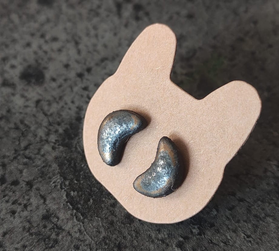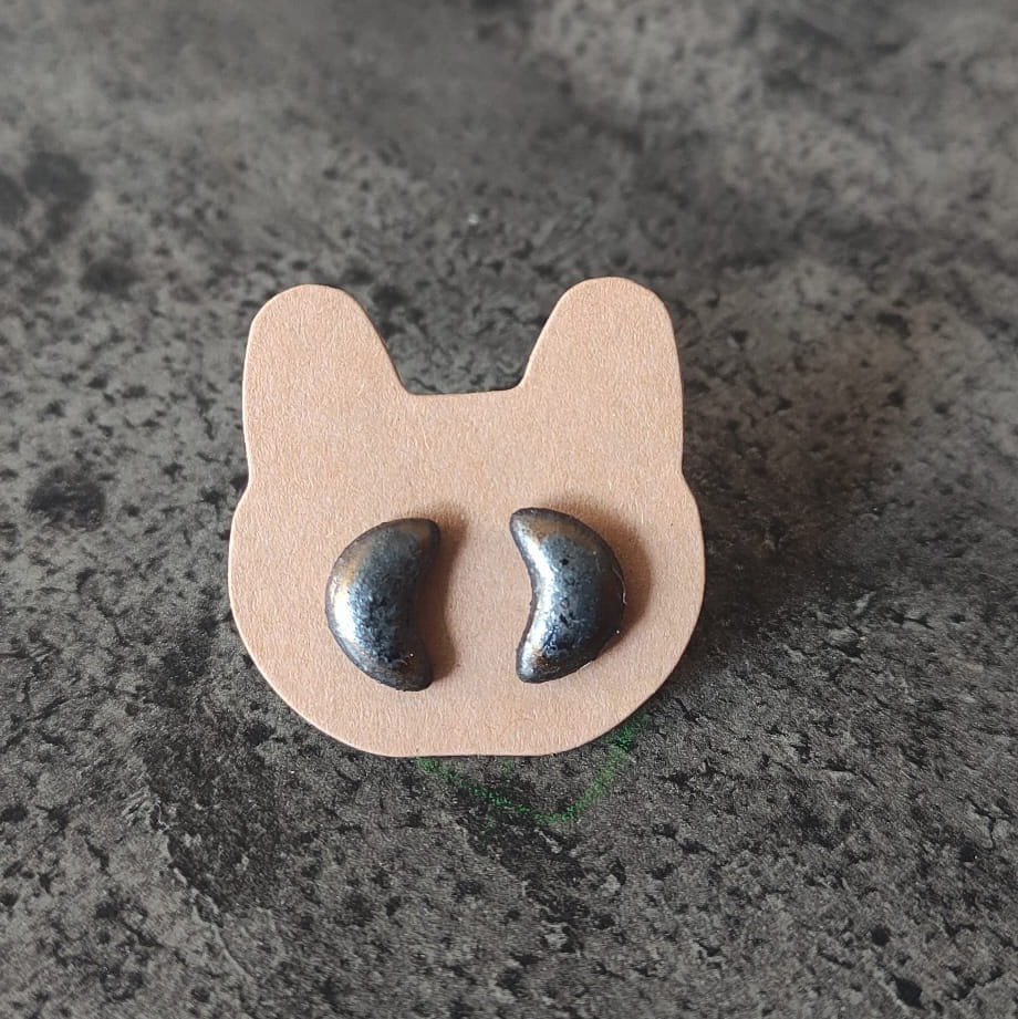 Kolczyki wkręty ceramiczne - Lunule stare złoto i srebro