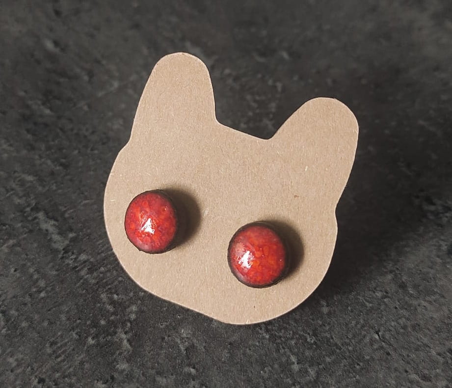 Kolczyki wkręty ceramiczne - czerwień efektowa