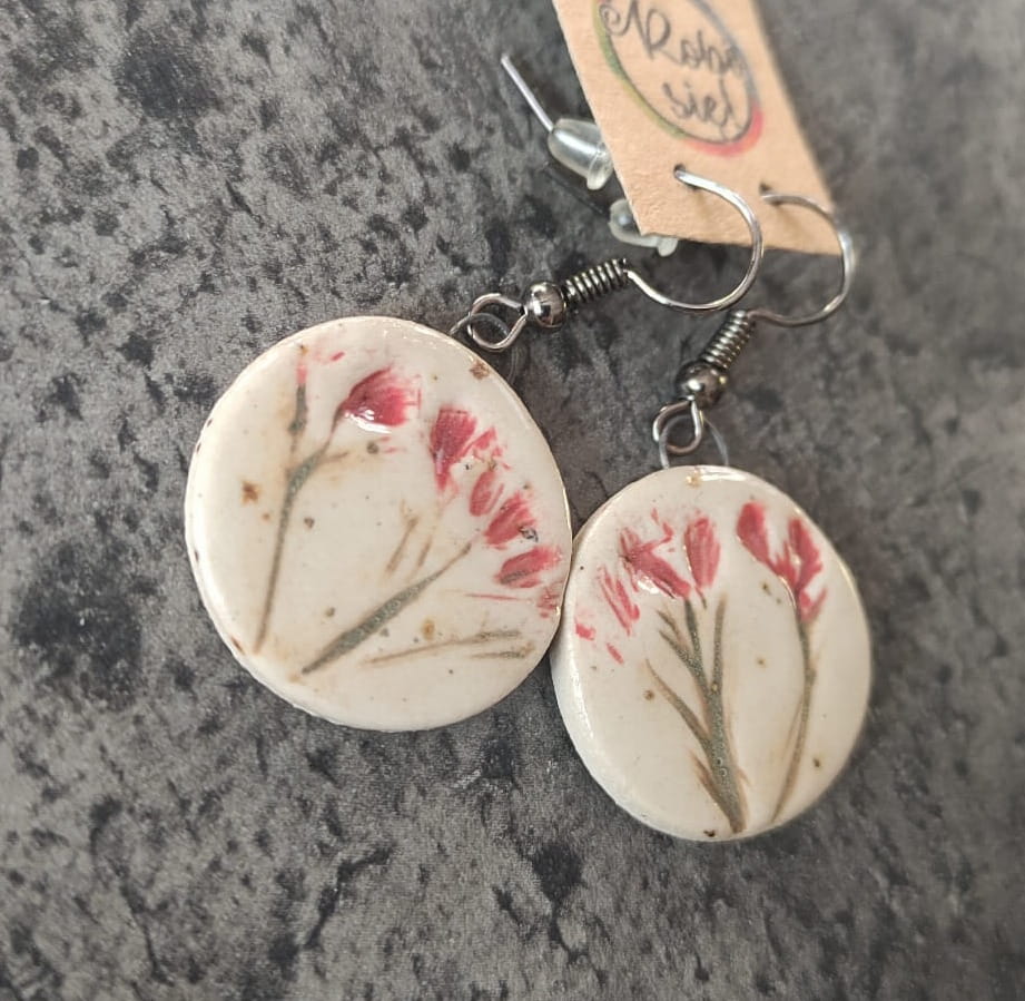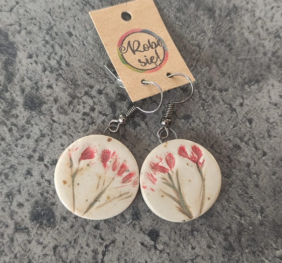 Unikalne ręcznie robione kolczyki ceramiczne z odciskiem roślin