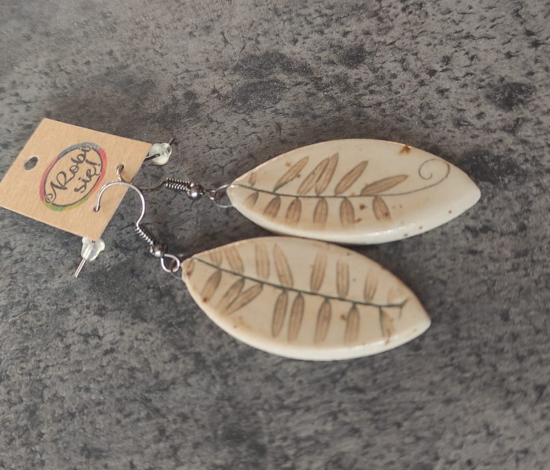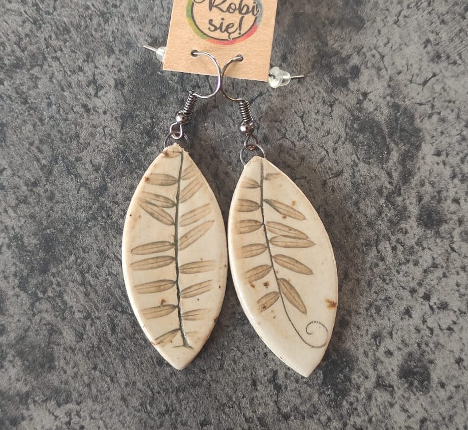 Unikalne ręcznie robione kolczyki ceramiczne z odciskiem roślin