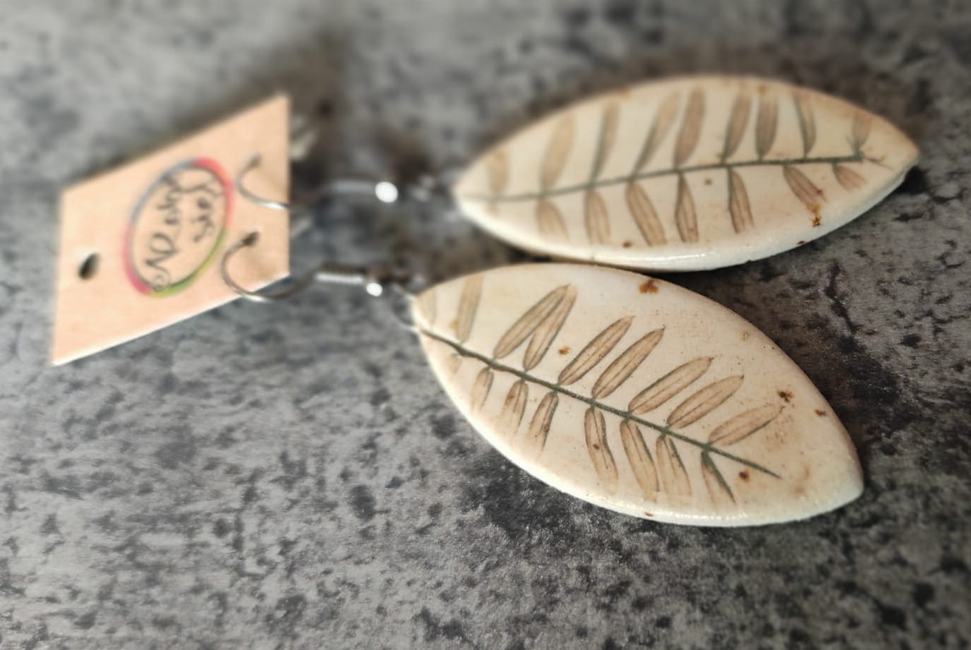 Unikalne ręcznie robione kolczyki ceramiczne z odciskiem roślin