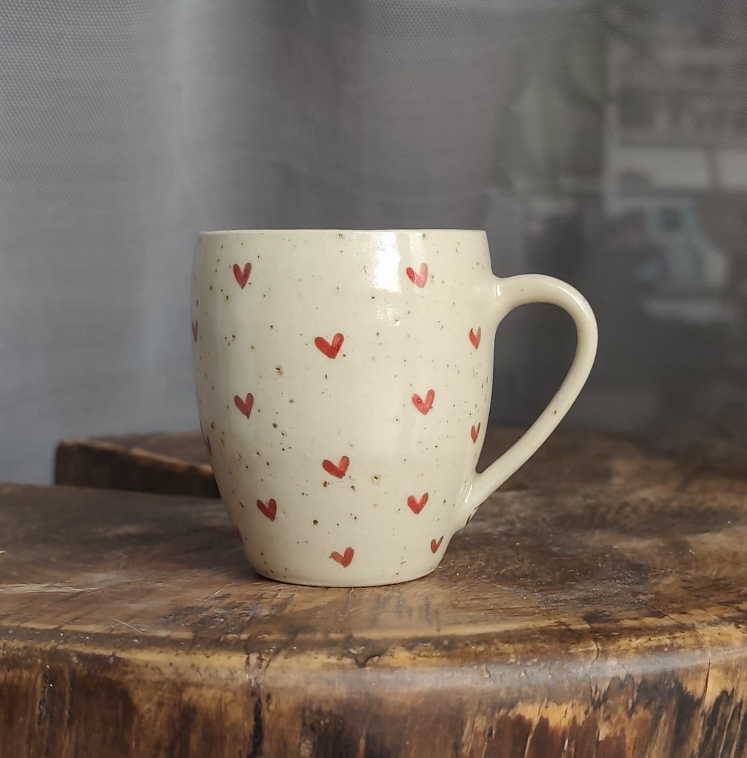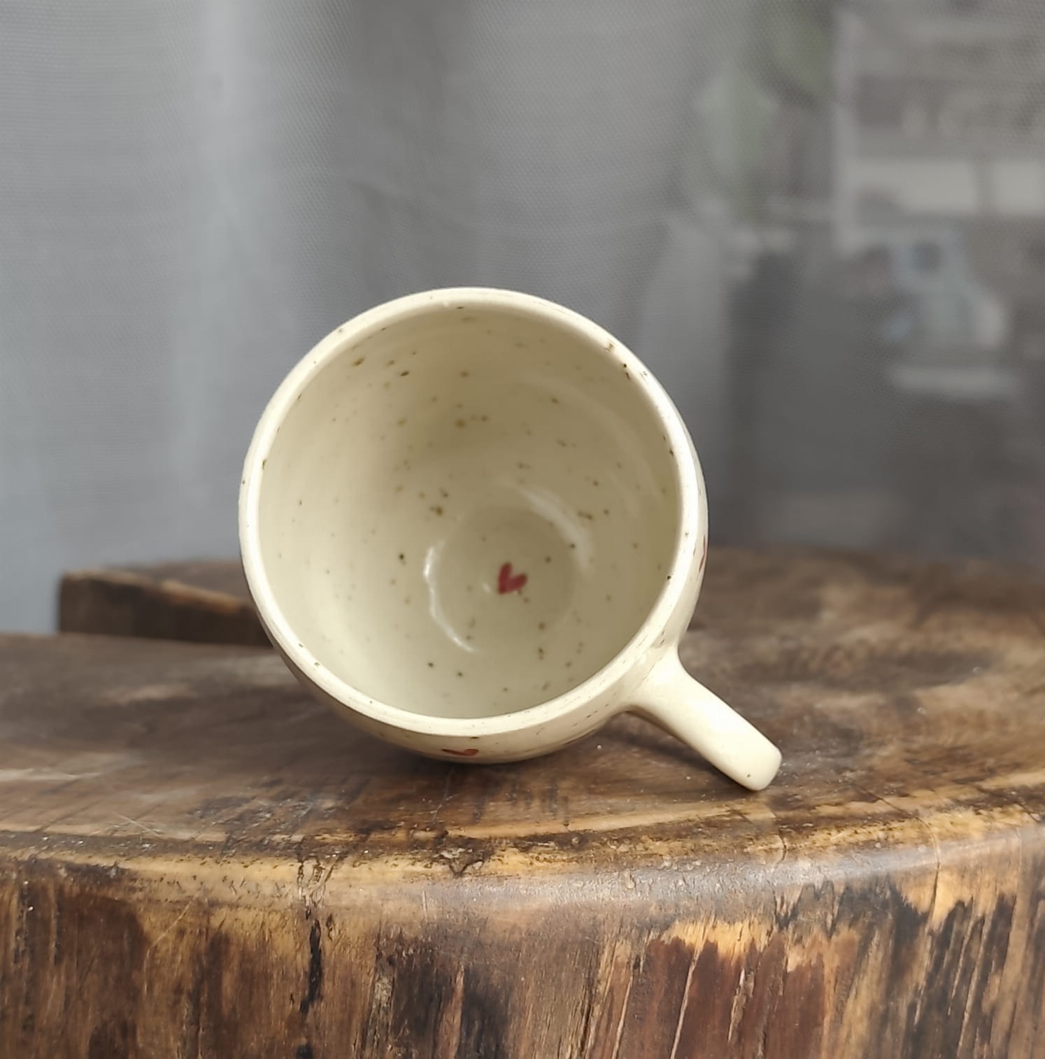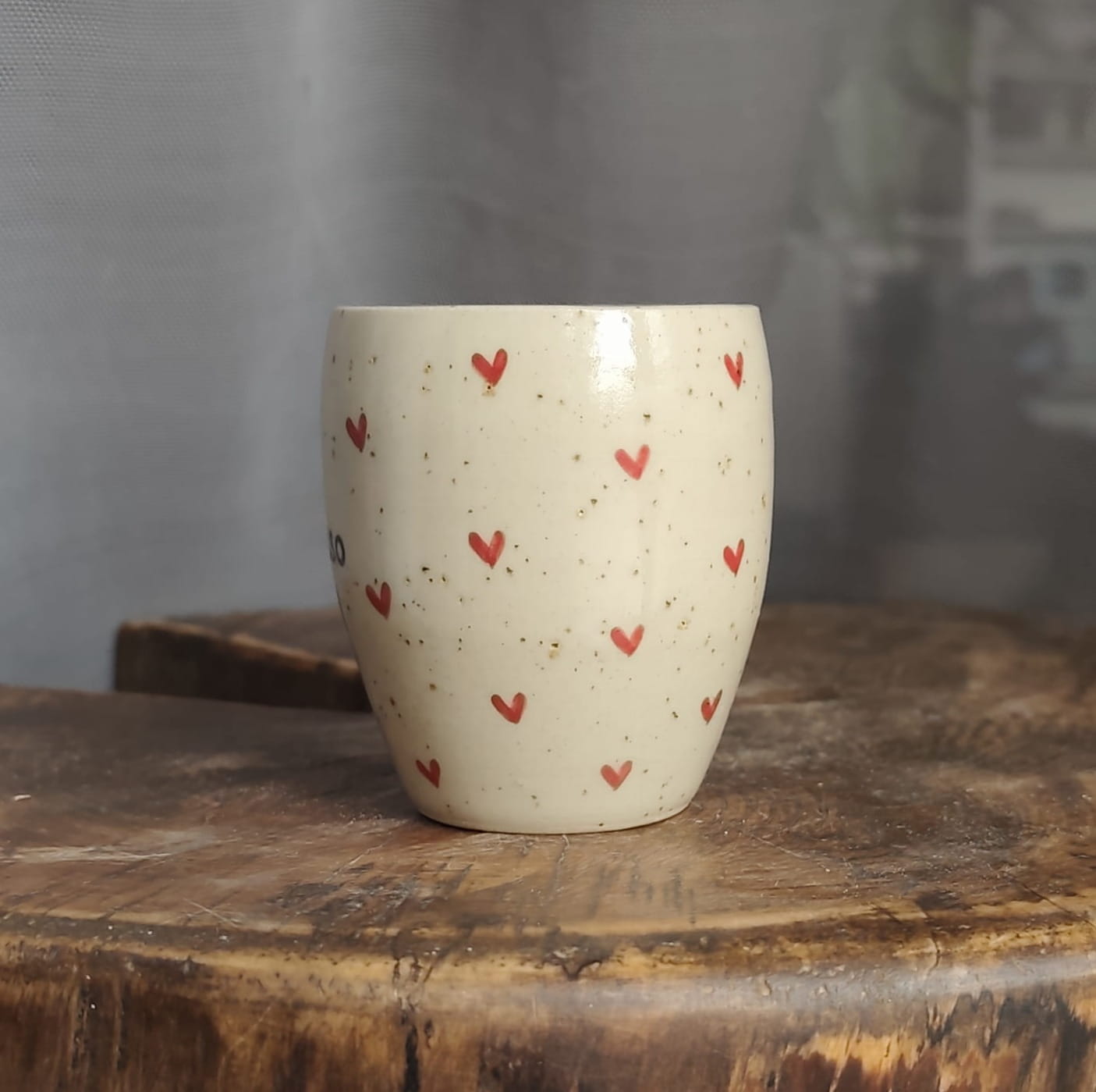 Unikalny kubek toczony na kole malowany w serduszka + napis DEPRESSO.