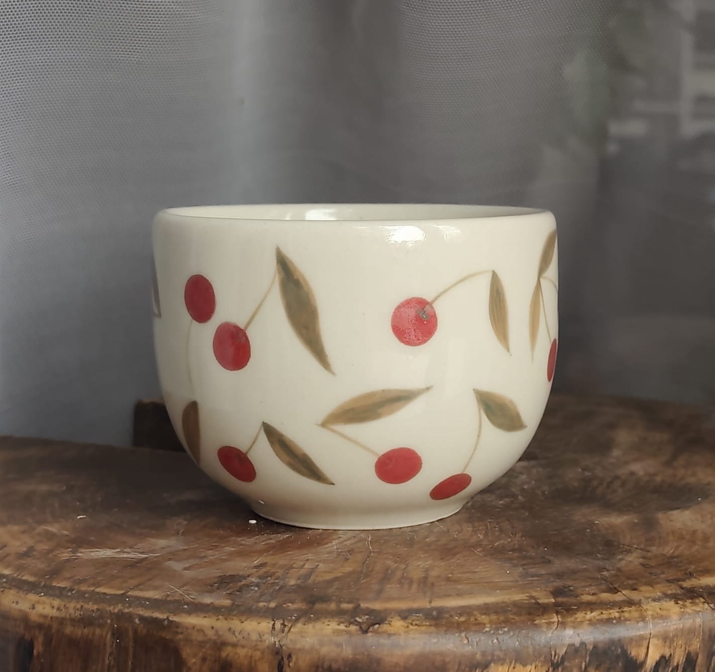 - Ręcznie wykonany – ten kubeczek było odlewany w formie z gliny w formie lejnej, dzięki czemu ma bardziej regularny kształt. Pamiętaj jednak o tym, że każdy tworzę ręcznie, osobno, mogą się różnić między sobą kształtem czy pojemnością, różnice są niewielkie, ale są, podobnie jeśli chodzi o malowany wzór.